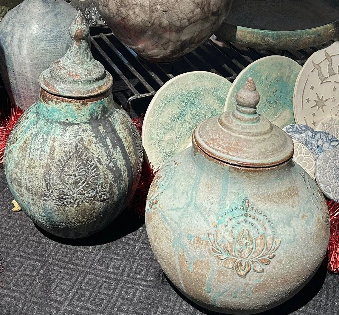 Her unique, handmade urns and art can be purchased.